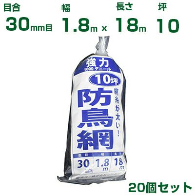 シンセイ 強力防鳥網 (青) 1.8X18m 目合30mm 20個セット(防鳥ネット)(鳥害対策)(鳩)(カラス)(防鳥網)(農業用)(園芸用)(農業資材)(家庭菜園)