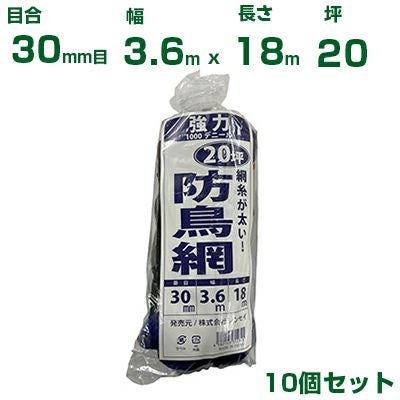 シンセイ 強力防鳥網 (青) 3.6X18m 目合30mm 10個セット(防鳥ネット)(鳥害対策)(鳩)(カラス)(防鳥網)(農業用)(園芸用)(農業資材)(家庭菜園)