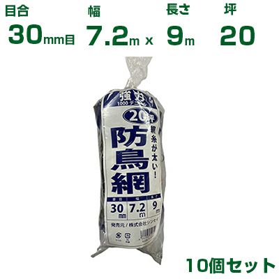 シンセイ 強力防鳥網 (青) 7.2X9m 目合30mm 10個セット(防鳥ネット)(鳥害対策)(鳩)(カラス)(防鳥網)(農業用)(園芸用)(農業資材)(家庭菜園)