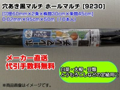 ・材質:PE(ポリエチレン) ・厚み×幅×長さ:0.02mm×95cm×50m ・穴径60mm×2条×株間30cm×条間45cm ・カラー:黒色 ・配列:ちどり ・主な適応作物:[白菜][レタス][だいこん][とうもろこし][えだまめ][落花生] ※巻取り時に多少のシワが発生してる場合がございます。あらかじめご了承お願いします。 |