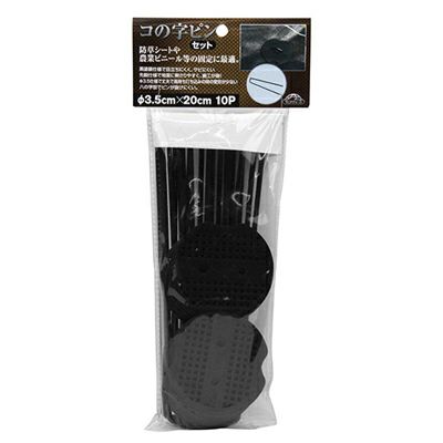 | ●目立ちにくく、サビにくい黒塗装仕上げです。 ●地面に刺さりやすく、施工がしやすい先鋭仕様です。 ●施工後、八の字にピンが開く為、ピンが抜けにくいです。 ●パット付でシートをしっかり押さえることができます。 |