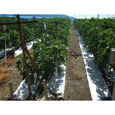 土壌への雨水の浸透を防ぎ、炭酸ガスや水分を発散させますので、程よい乾燥状態を保ち果実の糖度をアップさせます。