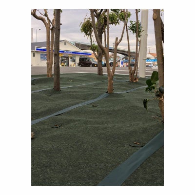 植樹ニューマットC-3は、回収されたペットボトルなどのリサイクルPET繊維から生まれた、地球にやさしいマルチングマットです。