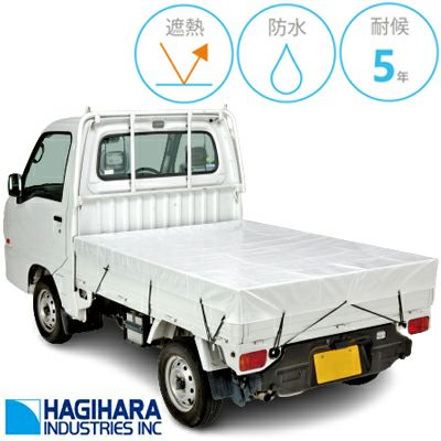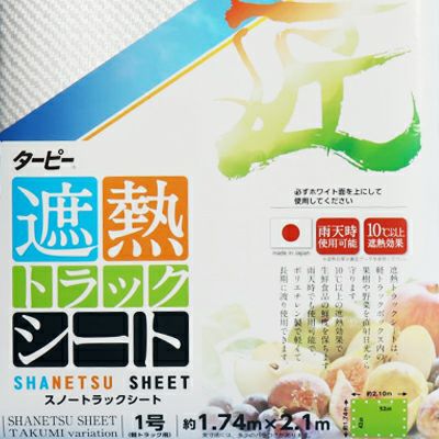 | 新鮮さをそのままに。遮熱効果のあるトラックシート。 【特長】 ●カバーがない時と比べ、内部温度が約10℃低くなります。 ※真夏の炎天下での当社遮熱性比較試験結果より ●雨天時の運搬にお使い頂けます。 ●シート1枚の重量が約750gと、当社ターボリントラックシートの約1/2の重量で、作業の負担を軽減します。 |