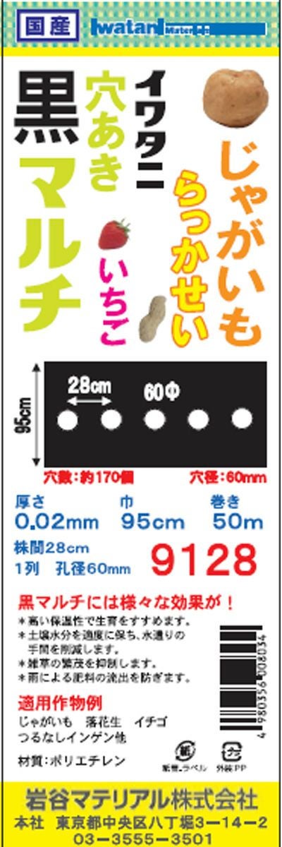 マルチフィルムで覆うことにより、様々な効果を発揮します。 岩谷 イワタニ 菜園用 じゃがいも用 穴あき黒マルチ 9128 60mm孔 0.02mm×95cm×50m 農業資材 園芸用品 家庭菜園