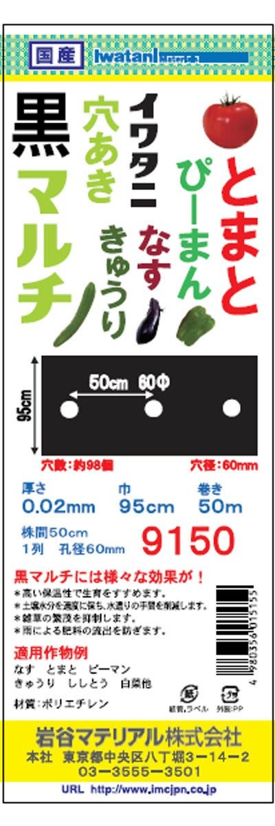 マルチフィルムで覆うことにより、様々な効果を発揮します。 岩谷 イワタニ 菜園用 トマト用 穴あき黒マルチ 9150 60mm孔 0.02mm×95cm×50m 農業資材 園芸用品 家庭菜園