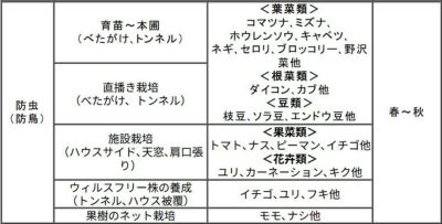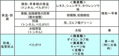 ●防虫 ●防寒(保温) ●防霜 ●防風(砂、塩) |
