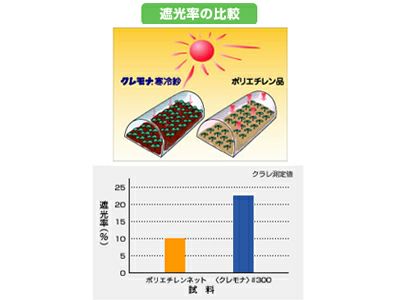 | 防虫ネットとは一味違う<クレモナ>寒冷紗です。 いまや時の流れは、減農薬・有機栽培。作物本来の良さを活かし、守りながら育てたい。 ビニロン(PVA)糸を使用している<クレモナ>寒冷紗は防虫効果はもちろんのこと 1:遮光効果 2:蒸散 防止効果 3:保温効果 4:防風効果に優れ、そ菜類の育苗・トンネル栽培、台風対策に適しています。 遮光率の比較 <クレモナ>寒冷紗はポリエチレン品より遮光率が高く強い日ざしをさえぎります。 蒸散防止効果 <クレモナ>寒冷紗とポリエチレン品では約2割程度の保湿力の差があります。 防虫効果 毛羽効果でより一層の防虫効果を発揮します。細かい害虫もシャットアウト! 風雨による被害の軽減 台風などの強風雨から作物を守ります。特に<クレモナ>寒冷紗は吸湿性に優れるため、塩害対策にも効果があります。 冬どり~春どり栽培にも <クレモナ>寒冷紗は放射冷却を防ぐ人工の雲 保温性 赤外線の透過性が低いため、夜間の保温性には特に優れています。 使用上のご注意 ●雨などで濡れると、乾く時縮みますので、余裕をみて張って下さい。縮み率:白6%程度、 黒4%程度。 ●支柱、あるいは留め具などと擦れるといたみますので、<クレモナ>寒冷紗と接触する部分は滑らかな面にして下さい。 ●縫い合せには耳の厚くなっている部分を利用して下さい。 ●人や重量物をささえたり落下防止用途には、使用しないで下さい。 ●火気厳禁。燃えやすいので、火気の近くでは使用しないで下さい。 ●表示された用途以外には、使用しないで下さい。 |