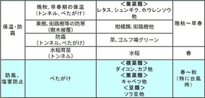 ・防虫 ・防寒(保温) ・防霜 ・蒸散防止 |
