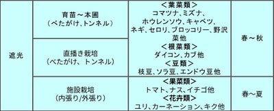 ビニロン(PVA)糸を使用している<クレモナ>寒冷紗は防虫効果はもちろんのこと、1)遮光効果2)蒸散 防止効果3)保温効果4)防風効果に優れ、そ菜類の育苗・トンネル栽培、台風対策に適しています。