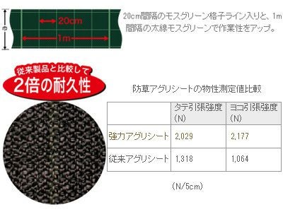 | 防草効果・耐候性・耐久性をさらに強力アップ。 張替え寿命を2倍に延長して経済効果を発揮 ●高密度織で物性強度を高め従来の2倍の耐久性を確保 高密度強力特殊織で物性強度を大幅アップ、施設園芸内の張替え寿命を2倍に延長し経済効果を発揮 ●高い遮光性で防草効果・透水性加工でぬかるみ防止 優れた防草効果と農業用織物防草シートの中では優れた透水性でぬかるみを防止し、施設園芸や現場作業場の快適環境を提供 ●織り方に工夫を施し滑りにくく、環境に優しい素材を使用 織り方に工夫を施しているので滑りにくく安全、焼却しても有毒ガスがほとんど発生しない素材を使用 |