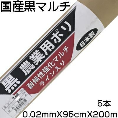 個人宅配送OK 黒マルチ 95cm シンセイ 国産 耐候性強化マルチ ライン入 0.02mm X 95cm X 200m X 5本 農業資材 家庭菜園 マルチング マルチシート