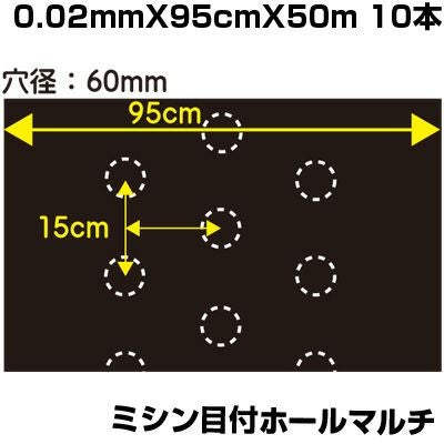 個人宅配送OK シンセイ ミシン目付 ホールマルチ 9315 0.02mm X 95cm X 50m 10本 穴あき黒マルチ 農業資材 家庭菜園 マルチング マルチシート 大根 白菜 レタス トウモロコシ