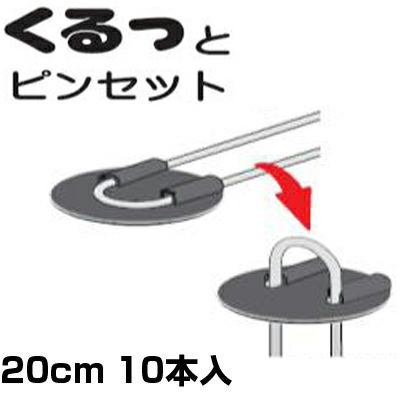 シンセイ くるっとピンセット 10本 20cm 黒丸付き 押さえピン 止めピン 固定ピン ワッシャー 防草シート 不織布 マルチ ネット