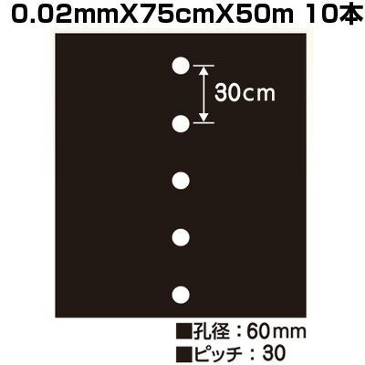 シンセイ ホールマルチ 黒マルチ 7130 0.02mm X 75cm X 50m 10本 穴あきマルチ 1列 農業 家庭菜園 マルチシート ジャガイモ 大根 キャベツ レタス