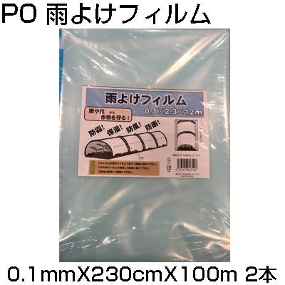 個人宅配送OK シンセイ PO 雨よけフィルム 0.1mm X 230cm X 100m X 2本 農業資材 防霜 保湿 防風 防雨 トンネル 農PO