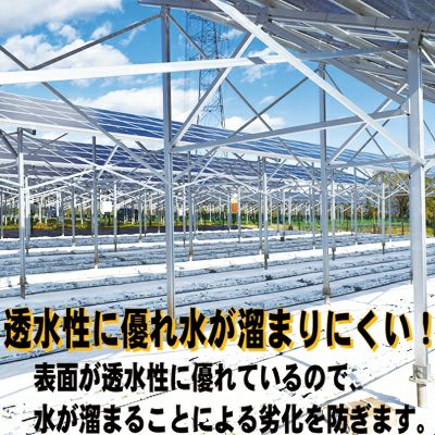 | 作物の光合成促進!菜園の雑草抑え! 【特長】 ●光線反射率に優れた白色シート ●作物の光合成を促進 ●果実の着色に効果を発揮 ●育苗時の地温上昇抑制 ●透水性があり水が溜まりにくい ●光線反射率に優れた白色タイプ 太陽光の反射率が高い白色を採用し、作物の光合成・色付けを促進させます。また、地温上昇を抑制する効果があります。 ●透水性に優れ水が溜まりにくい! 表面が透水性に優れているので、水が溜まることによる劣化を防ぎます。 菜園やハウス内の通路、花壇・植木まわり。休耕地の雑草押さえに。 【使用上の注意】 ●効果やシートの耐久性は使用状況や場所などによリ異なります。 ●人や重量物を支えたり落下防止には、使用しないでください。 ●火気の近くでのご使用は避けてください。 |