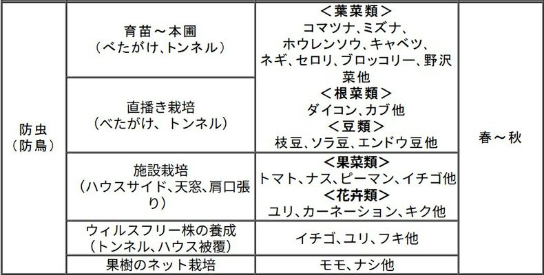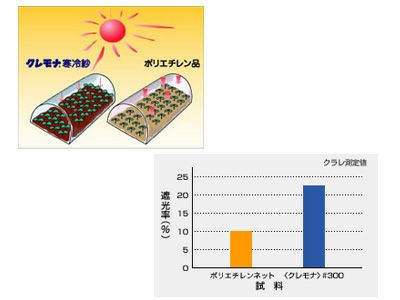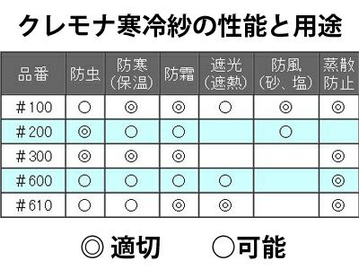 ビニロン(PVA)糸を使用しているクレモナ寒冷紗は防虫効果はもちろんのこと、1)遮光効果 2)蒸散 防止効果 3)保温効果 4)防風効果に優れ、そ菜類の育苗・トンネル栽培、台風対策に適しています。 クラレ クレモナ寒冷紗 #300 白 135cm X 100m 遮光率 約30% 農業資材 トンネル べたがけ 防虫 遮光 蒸散 保温 防風 そ菜類 育苗 台風対策