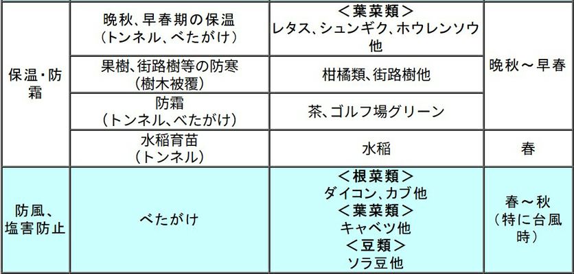 被覆資材とは、施設栽培や露地栽培などの際に専用のシートで農地を覆い隠し、温度管理や湿度管理に加えて雑草の繁茂を抑えるためのシートを指します。