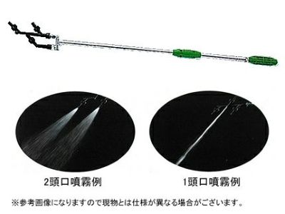 空気を混入した噴霧角度20°と棒状の霧の低ドリフトという特性を生かしながら、手元のグリップをまわすことで遠距離(1頭口)と中距離(2頭口)の散布が切り替えられ街路所、立木や果樹(みかん・りんご等)に最適です。 ※散布幅はノズルからの距離が1mでの数値です。 |