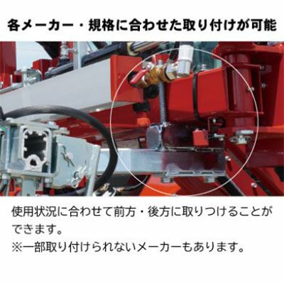 大豆Zバー (3畦用・5畦用・5畦用(伸縮タイプ)) 豆・ビートの畝間の除草剤散布に! 対応動噴:乗用管理機 取付ネジ:G1/4 推奨使用除草剤:接触型除草剤 新設計そり型バーにより圃場条件に左右されず散布位置を保ちます。 伸縮タイプは幅を調整できますので移動や格納が容易です。 大豆の葉下でノズルを左右に角度調節できますので、大豆の本葉に掛かり難く株元から畦間までしっかり散布できます。 発砲ノズルタイプの為散布跡が白く残り薬液が雑草に付着しやすく飛散しにくい噴口です。 そり型バーにスプリングがついており、段差や畦による噴管への負担を最小限に抑えます。 各メーカー・規格に合わせた取り付けが可能です。 ※一部取り付けができない規格もございます。 |