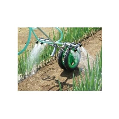 | アフェット?フロアブルの灌注処理に最適! ●既存の動力噴霧機を使って灌注処理できるカート式ノズルです。 2畝を同時散布できるため、労力と時間が削減できます。 ●片側4個のノズルは散布方向が変更できるため、ネギの株元を狙って散布できます。 扇形のドリフトが少ない霧は均一性に優れています。 ●片側散布、両側散布の切り替えが可能です。 ?は三井化学アグロ(株)の登録商標です。 |