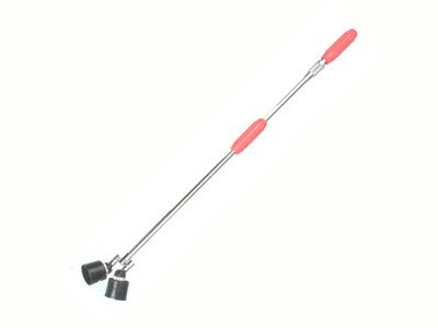 ●クイックノズルが2ヶ並んで装備されていますので、個々に両サイドに向けますと溝を歩きながら両方の作物が同時に防除出来ると共に、一方を遠方に、一方を近くに設定しますと一度に広範囲防除ができ、作業能率が2倍にアップします。 |