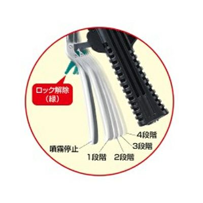 | レバーひとつで4段階の霧調整!各段階で噴霧ストップ! ●動力噴霧機で使用できます。(標準ノズル) ●背負動噴でも使用できます。(付属の噴板に交換した場合) ※背負動噴の性能は、吸水量5.0?/分以上と圧力1.5MPa以上を推奨。 ●レバーを握るだけで広角から狭角までの4段階の霧調整が片手ででき、ロック解除(緑)を押すだけで、簡単に噴霧停止ができます。 ●軽量で作業性を重視した形状のため、作業負担を軽減します。 ●霧は扇形のためムラが少なく、果樹や野菜等の散布に幅広くご使用できます。 ●ネジの緩みを防止するロックキャップを採用しています。(特許品) ●ノズルを付属のNNーZVー14Sに交換することで、背負動噴、小型動噴などの吸水量の少ない機器でもご使用できます。 |