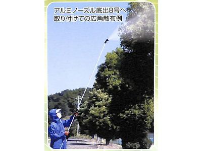 | お手持ちの散布竿に簡単に取り付けできるズーム噴口 ●お手持ちの散布竿に簡単に取り付け!(取付ネジ:G1/4(ISO)) ●先端調整部を回すことにより、噴霧パターンを狭角から拡角に変えられます。また、ラチェット機構により、噴霧中に霧が変わる心配がありません。(特許出願済) ●本体は樹脂製のため、軽量です。 ●噴板は、摩耗に強いステンレスを使用しています。 ●ネジの緩みを防止するロックキャプを採用しています。 |