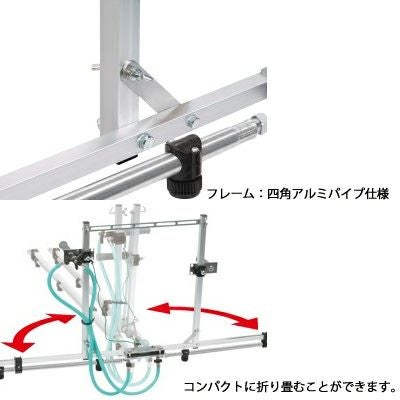| アルミ製四角フレームでがっちり! ●フレームにアルミ製四角パイプを採用し、作業時のフレームのねじれを防止することにより、安定した平行散布ができます。 ●噴霧管は高強度で腐食に強いステンレスパイプを採用しています。 ●本体部を折り畳み式にし、楽に早くコンパクトに収納できます。 ●平行散布により散布ムラが少なく、農薬の節約に役立ちます。 ●一度に広範囲の散布が可能なため、労力と時間が大幅に削減できます。 ●中持ブームⅢ型は、三方コックにより片側のみの使用も可能です。 |
