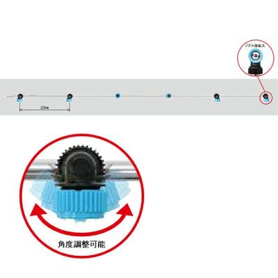 | ねぎの株元に狙い撃ち!2畝同時散布! ●ねぎの株元を狙って散布できるように角度調整が可能な可変ノズルを採用しています。 ●従来の散布方法とは異なり、株元に効率良く噴霧できます。 ●2畝同時散布可能で省力化を実現しました。 |