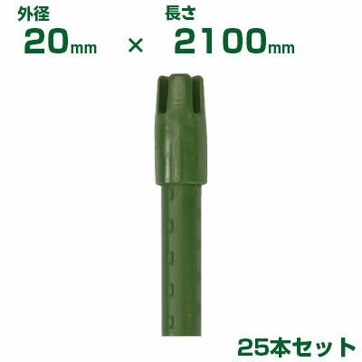 線材・ひも掛けに最適 積水 セキスイ 農業用支柱 イボ竹 グリーン φ20 X 2100mm 25本 十字キャップ付