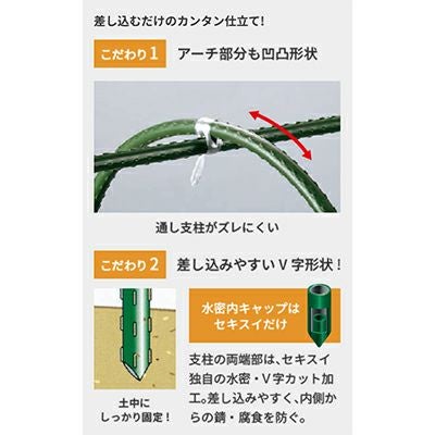 簡易雨よけ・ネット栽培用支柱 積水 セキスイ 農業用 菜園アーチ支柱 φ11 X 1500mm (間口370) 25本 グリーン