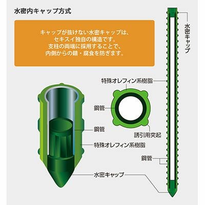 支柱両端に水密キャップを採用、内側からの錆・腐食を防ぐ