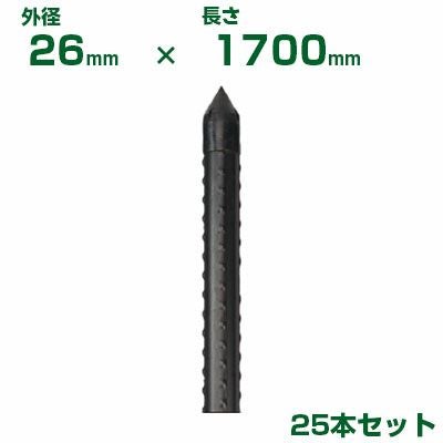 固い地面にもしっかり打ち込める 積水 セキスイ 農業用支柱 イボ竹 打込用 黒 φ26 X 1700mm 25本 JKタイプ