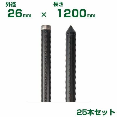 固い地面にもしっかり打ち込める 積水 セキスイ 農業用支柱 イボ竹 打込用 黒 φ26 X 1200mm 25本 Kタイプ