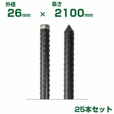 固い地面にもしっかり打ち込める 積水 セキスイ 農業用支柱 イボ竹 打込用 黒 φ26 X 2100mm 25本 Kタイプ