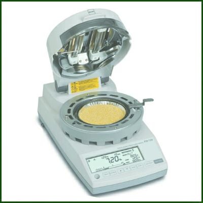 | FD-720は高精度の0.01%と通常の0.1%を切り替えて、水分表示することが可能です。本器は高精度な測定を実現するため、分解能1mgの天秤ユニット「ユニブロック」を採用し、また乾燥部には新開発の大熱容量200W×2の中波長赤外線クオーツヒータを装備しました。さらに乾燥制御ソフトウェアによって短時間の測定で水分値が得られる「急速乾燥モード」を採用し、測定対象によっては測定時間を大幅に短縮することが可能となりました。メモリエリアに測定条件を10種類、記憶することができ、異なる測定条件の試料であっても条件設定をそのつど入力する必要がありません。オプションのデータロガーソフトの使用で、データをPCへ転送することや、オプショナルプリンタVZ-330で、測定結果をグラフ形式や文字データ形式で出力することができます。本器は高度な水分管理を必要とする品質管理部門や、検査部門の水分計として位置づけられ、高精度な水分管理にお使いいただけます。 ●標準乾燥法に最も類似した加熱乾燥・質量測定方。 ●高精度アルミ一体型質量センサ「ユニブロック」を採用。応答性、温度特性、対衝撃性に優れた信頼性の高い計量ユニット。 ●新方式のオートテア機構を採用。天秤のゼロ点校正を自動的に取りながら測定を行うため、長時間の測定でも天秤ドリフトは補正され、高精度な測定が可能。 ●オプションのデータ管理ソフトを用意。パソコンと接続し、測定データをMSExcel互換のワークシート形式へ転送することが可能。 ●熱源に中波長赤外線クォーツヒータを採用。クォーツヒータ(最大エネルギー波長2.6μm)は広範囲の試料の乾燥効率に優れ、試料の色による差が出にくく、また試料面温度のオーバーシュートが無いため理想的な乾燥が可能。また、クォーツヒータの平均寿命は2?3万時間で、これは従来の赤外線ランプやハロゲンランプと比較し5?10倍の長寿命。 ●さまざまな測定要求に応える6種の測定モードを用意。自動停止、時間停止、急速乾燥、緩速乾燥、ステップ乾燥、予測(比較)測定の6モードを備え、測定試料の乾燥特性に適した乾燥条件の選択が可能。 ●測定条件(乾燥温度・測定モード)を10種、登録保存が可能。測定条件保存エリアを備え、測定条件をこのエリアに登録することによって、測定準備がよりスムースに行なえる。 ●30秒間の水分変化量(ΔM)を数値とスケールで表示。表示部に水分変化量(ΔM)を表示。終了時期の目安がつけやすく、また測定終了条件を決める際に有効。 ●オプショナルプリンタに接続可能。測定途中の乾燥状態、最終測定値などをグラフ化しプリントアウトすることが可能。 ●質量センサの校正が可能。校正時にGLP、GMP、ISOの要求に対応する出力をプリントアウトすることができる。質量センサの校正にはオプションの専用分銅が必要 |