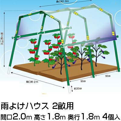 個人宅配送OK シンセイ 雨除けハウス 2畝用 XHYP-2-1.8-2.2 X 4個 家庭菜園 雨よけセットトマト きゅうり ナス ピーマン スイカ ほうれん草