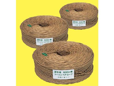 | 土に優しく、梨をおいしく、誘引用トーインペアロープ ●天然素材の黄麻と紙を使用していますので、自然に優しく、土に混ざっても有機分解して土に還ります。 ●有機分解型なので、地面に落ちたロープを回収しなくても、いずれ土に還ります。その分、作業時間が短縮できますので生産者の労力を軽減します。 ●芯に黄麻を利用していますので紙紐より丈夫です。又、適度な強度に設定してありますので、果樹の木に食い込むことがなく、養分が十分果実に行き渡り、おいしい梨を生産できます。 ●適度な風合いを持っていますので、指先を痛めず縛り付け作業が容易です。 |