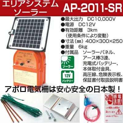 | セット内容 ・アポロ 電気柵本体 AP-2011-SR ソーラー10Wタイプ × 1台 ・シンセイ FRP電柵支柱 14mm × 900mm × 100本 ・シンセイ ステンがいし 14mm用 × 200個 ・シンセイ 電柵ロープ(ステンレス線3本) 500m巻 × 2巻 ・シンセイ ゲートグリップ × 2個 ・ニシデン産業 電気柵専用 電圧測定器(1000~6000V) × 1個 |