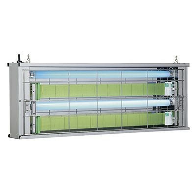 ハイパワー40Wクラスの大量捕獲型 捕虫紙を2個使用し、寄せつけた虫を逃しません。 裏面全体を遮へいしているため、ランプの光がおもて面だけから放射されます。窓際などに余計な虫を寄せつけない片面誘引タイプです。 |