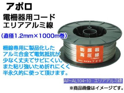 アポロ 電気柵 コード エリアアルミ線 AP-AL104-10 【φ1.2mm X 1000m巻】 高通電性 サビにくいアルミ合金 ゴルフ場などに 【代引不可】