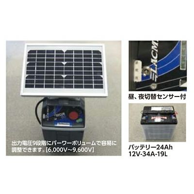 付属品 アース棒2本接続コード付、バッテリー接続コード、電牧線接続コード、危険表示板1枚、12Vバッテリー