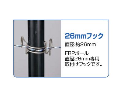末松電子 FRPポール用フック 【26mmポール用フック 50個入】 電気柵資材 電柵資材 電気牧柵資材 ※支柱は必ず末松電子製のFRPポールをご使用ください。 FRPポール用フック 柵線を支柱に固定するための資材です。 ※支柱の直径に合わせてお選びください。 26mmフック 直径:約26mm FRPポール直径26mm専用取付フックです。