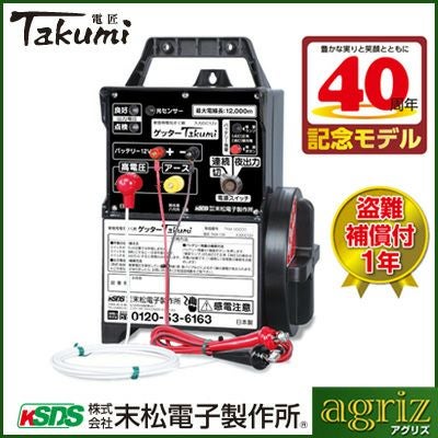 | セット内容 末松電子 電気柵 本体 ゲッター Takumi (電匠) TKM-12K×1台 末松電子 電気柵 資材 自在取付支柱セット×1式 家庭用100Vと太陽電池タイプでも使用できます。 【特長】 ●草に強い高出力 多少の草がついても効果的な電圧を保つ事ができます。効果を維持するためにも定期的な草刈りをおすすめします。 ●最強出力タイプ ゲッターシリーズ中、最強の出力で、大型の害獣や広い圃場などの場所に最適です。 |