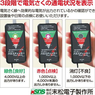 3段階で電気さくの通電状況を表示。 末松電子 電気柵 資材 パルスチェッカー 検電器