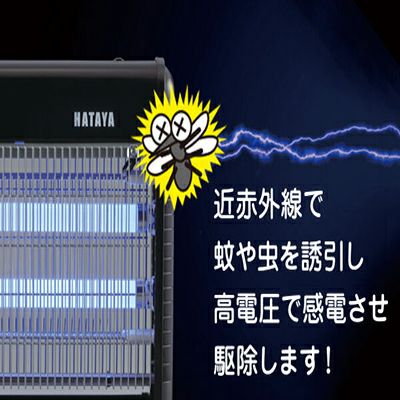 高電圧で感電! 近紫外線で誘引された蚊や虫を高電圧で感電させ、駆除します。 大型業務用タイプで効果UP! 誘虫効果が高い大型タイプです。 また薬剤は使用しないので、設置するだけの簡単作業です。 省エネ設計 電気代は1時間で約0.32円、長時間使用でも経済的です。 吊り下げ専用 本製品は吊り下げ用なので、付属のチェーンを使用して 吊り下げてご使用ください。 |
