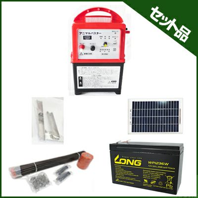 | セット内容 ・アニマルバスター NSD-5 (電気柵 本体):1台 ・FRP支柱 φ14mm×900mm:150本 ・電柵用ヨリ線 ステンレス線3本入 250m:6本 ・電柵用ヨリ線 ステンレス線3本入 500m:1本 ・ステンレスガイシ(フック) φ14mm:585個 ・ゲートグリップ:20セット ・12Wソーラーパネル:1個 ・12Wソーラーパネル用取付金具 ステンレス:1個 ・内部シールドバッテリー接続用コード:1個 ・ソーラー用シールドバッテリー 12V 12Ah:1個 安心安全設計!イノシシ、シカ、サル、クマ、小動物から大切な農作物を守ります! アニマルバスター NSD-5は、雑草や設置不備で漏電しても電圧が落ちにくい優れ物! ≪特長≫ ★入力電源のプラス、マイナス、逆接続保護回路付 ★スイッチの誤作動が少ないロータリースイッチ採用 ★プログラム暴走、誤作動対策を配慮した回路です ★入力電源により、適正な電池レベル位置を設定 ★電池確認残量は、『強』・『中』・『弱』の3段階表示 ★基板表面の撥水加工処理で湿度対策 ★圧電スピーカー内蔵、省電力で音でもお知らせ ※電池レベルが赤色になると、連続音(ピッ、ピッ、ピッ)が間隔を隔てて鳴り、電池交換時期を音でもお知らせします。 (出力時、待機時、共に連続音が鳴ります) ≪各部の名称とはたらき≫ ![]() ◎受光センサー 周囲の明るさを感知して自動的に、『昼のみ』『夜のみ』の出力動作を行います。 ◎出力ランプ 高電圧出力が作動している時は点滅し、作動していない時は点滅しません。 ◎電源スイッチ 電源を入り切りするスイッチです。上方向で入り、下方向で切れ、すべての機能が停止します。 ◎電池確認ボタン 電池レベル確認ボタンです。電池電圧により残量『強』は緑色、『中』は黄色、『弱』は赤色に点灯します。 ◎切替スイッチ 『連続』 昼夜連続で作動します。 『昼』 明るくなる昼間のみ作動します。 『夜』 暗くなる夜間のみ作動します。 ◎アース端子 付属されているアース棒に連結されているアース線の丸型端子を接続します。 ◎出力端子 付属の高圧線丸型端子をつないで、電柵線に高電圧を流します。 注意※出力端子、アース端子、取付け時は必ず電源を切にしてから行ってください。 注意※電源端子(乾電池・バッテリー)を接続するときは、+-を逆に接続しないでください。(作動しません) |