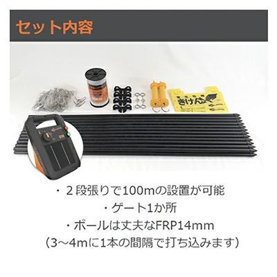 100mx2段張り 水田 養鶏 養蜂 飼料 ガーデニング イノシシ 猪 避け 防獣フェンス 電柵 電気牧柵 電牧 防獣柵 ミニ番兵 キット |